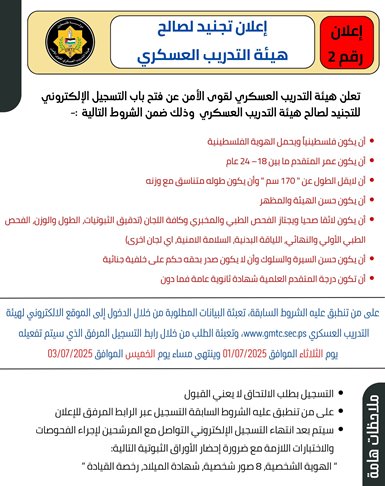• إعلان تجنيد لصالح هيئة التدريب العسكري.