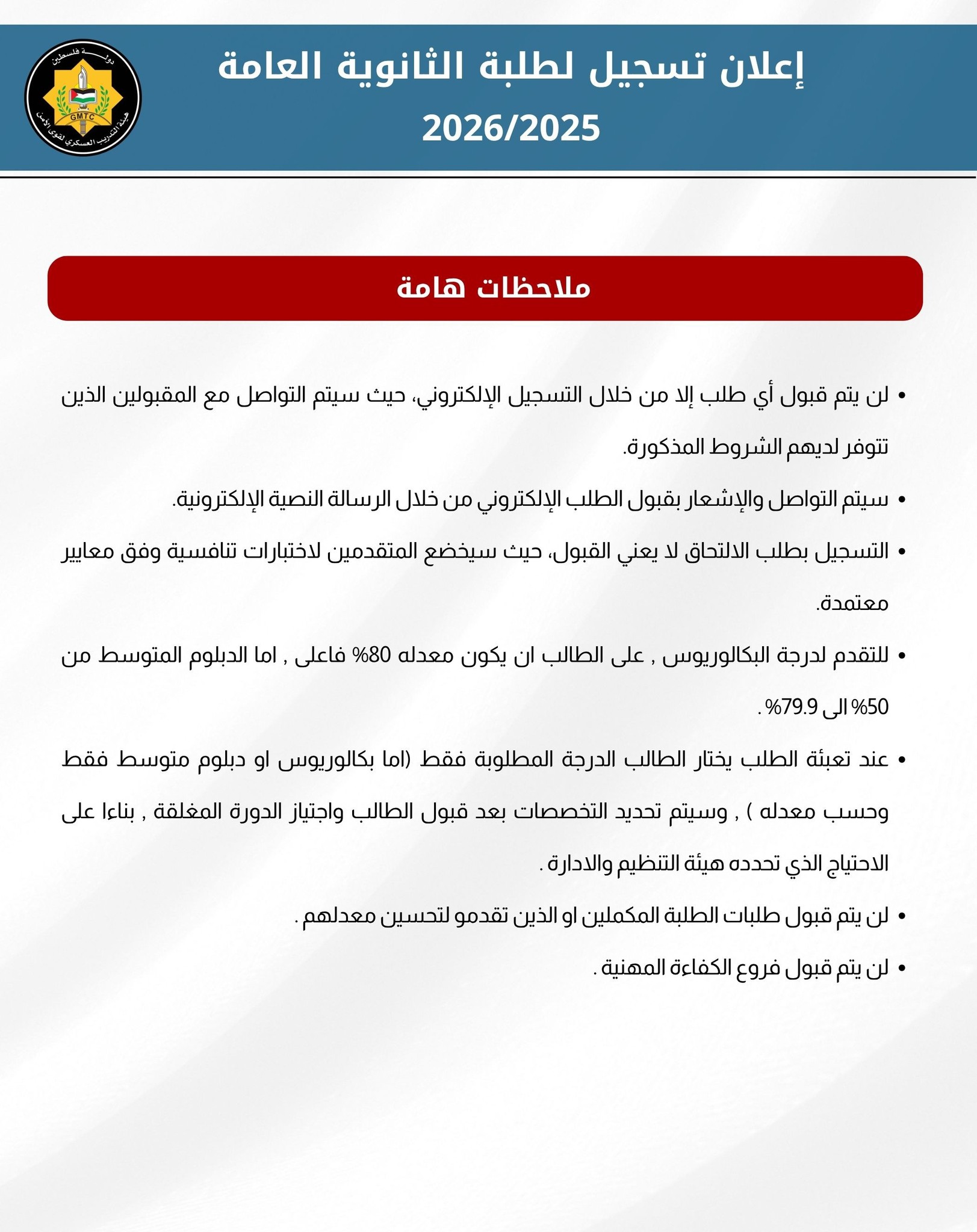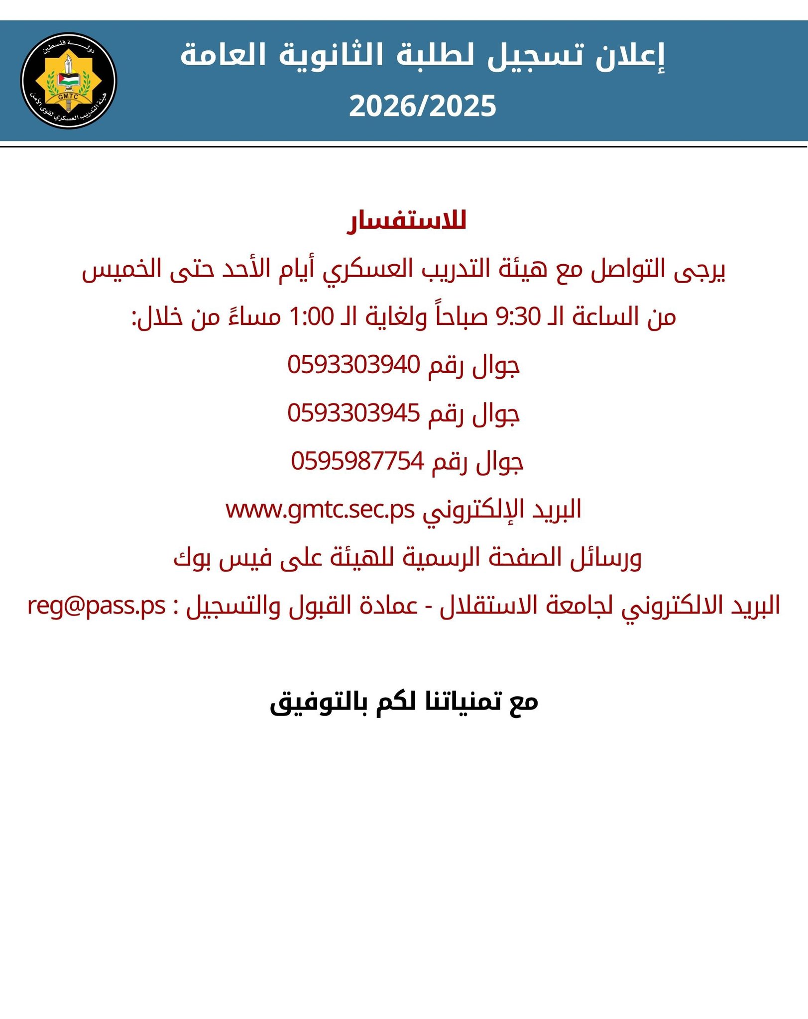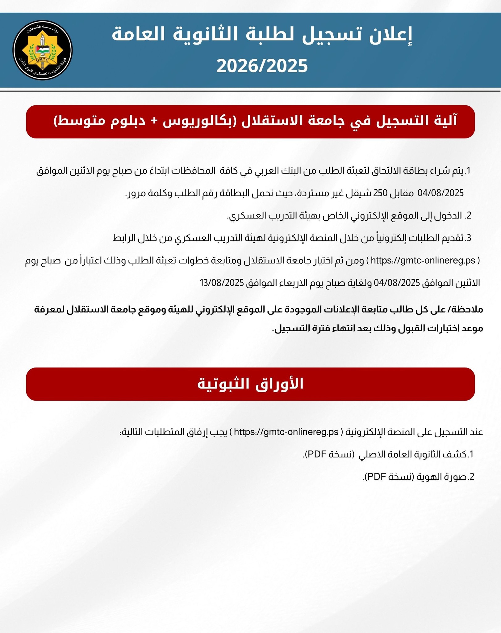 ملاحظة هامة: سيتم إرفاق رابط التسجيل بالإعلان وتفعيله صباح يوم الإثنين 2025/8/4