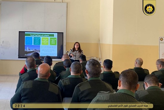 في إطار دورة تأهيل الضباط 32، ألقت الأستاذة مي رحال، ممثلة عن سلطة جودة البيئة، محاضرة تطرقت فيها إلى أبرز الانتهاكات الإسرائيلية التي تهدد البيئة الفلسطينية.